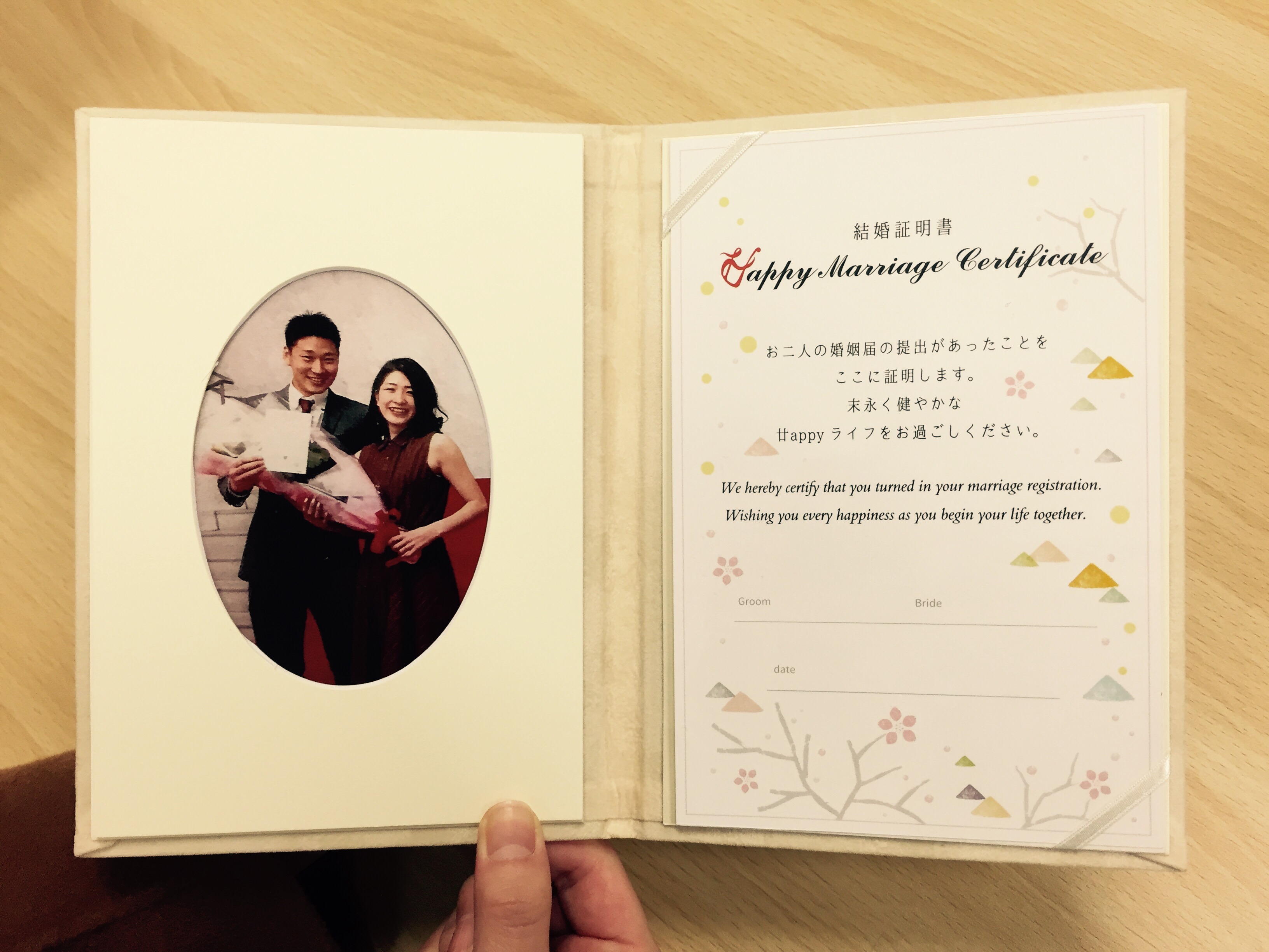 廿日市市で入籍届けを出す方々に今年度限定10組の方々に、選べる入籍届け&廿日市の産物や楽隊演奏付き(有料)と言う企画が。 証明書発行の証書のデザインをさせて頂きました。